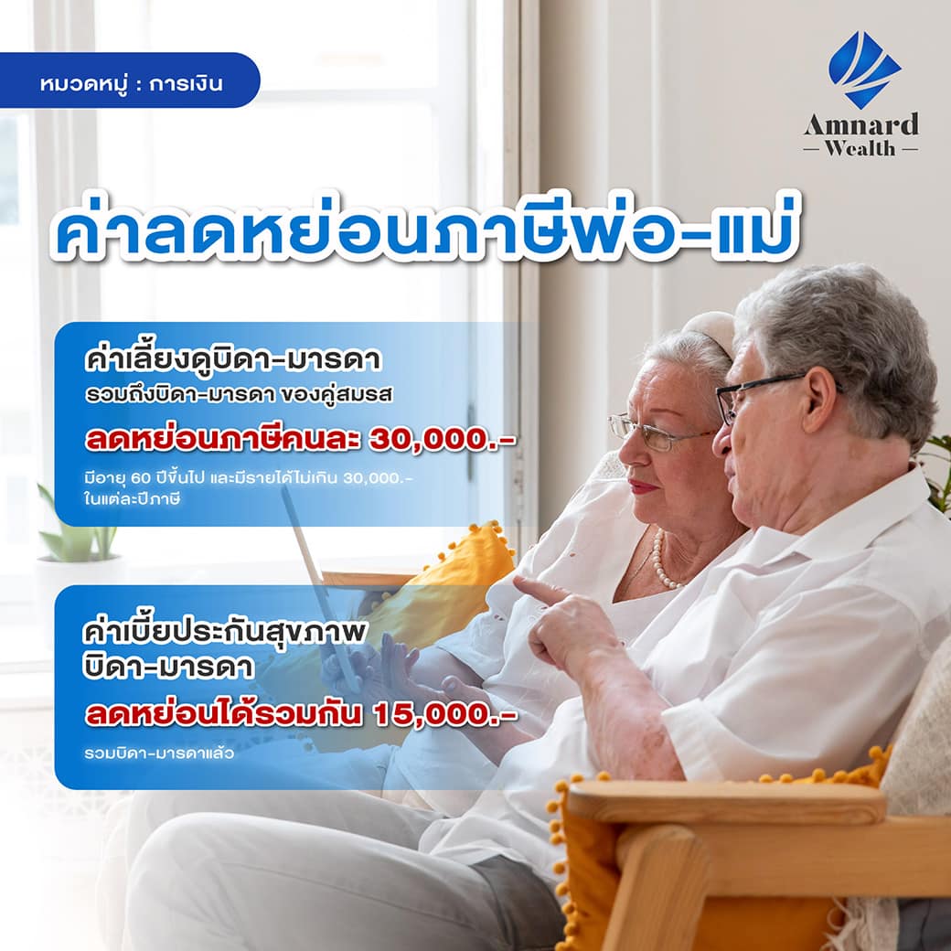 💵 การวางแผนการเตรียมลดหย่อนภาษี ที่วนครบรอบมาในทุกๆ ปีนั้น หลายๆ ท่านอาจจะกำลังศึกษาในเรื่องของ Easy e-Receipt กันอยู่ใช่มั้ยคะ แต่ในส่วนของการที่บิดา มารดาที่มีอายุ 60 ปีขึ้นไป ก็สามารถนำมาใช้ในการลดหย่อนได้ด้วยเช่นกัน