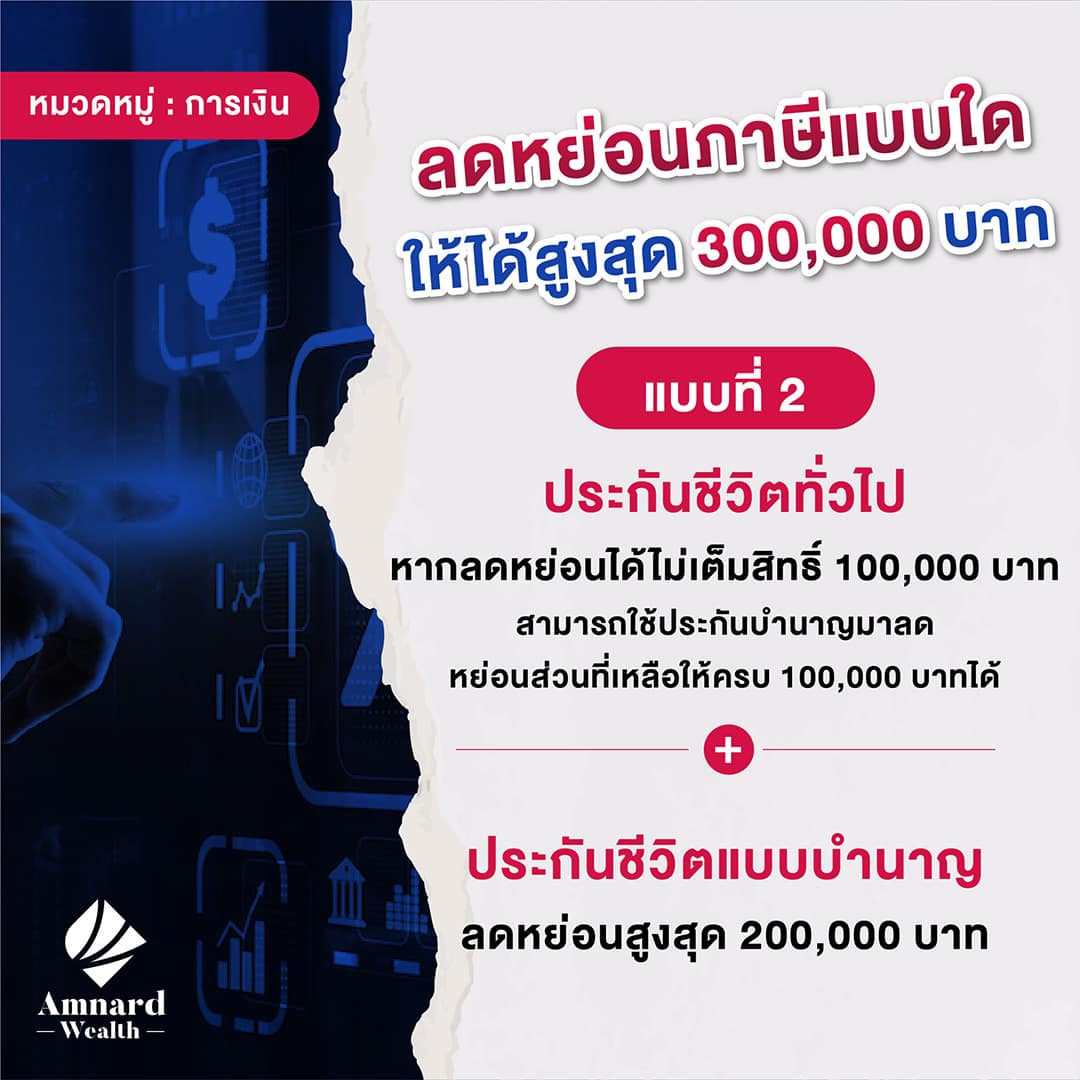 👉 หากใครที่กำลังมองหาการลงทุน ที่ได้ผลประโยชน์ในการลดหย่อนภาษี แอดมินขอแนะนำการทำประกัน เพราะการทำประกันให้ความคุ้มค่าในเรื่องของการลดหย่อนภาษี การวางแผนการเงิน และในเรื่องของสุขภาพและจิตใจอีกด้วย