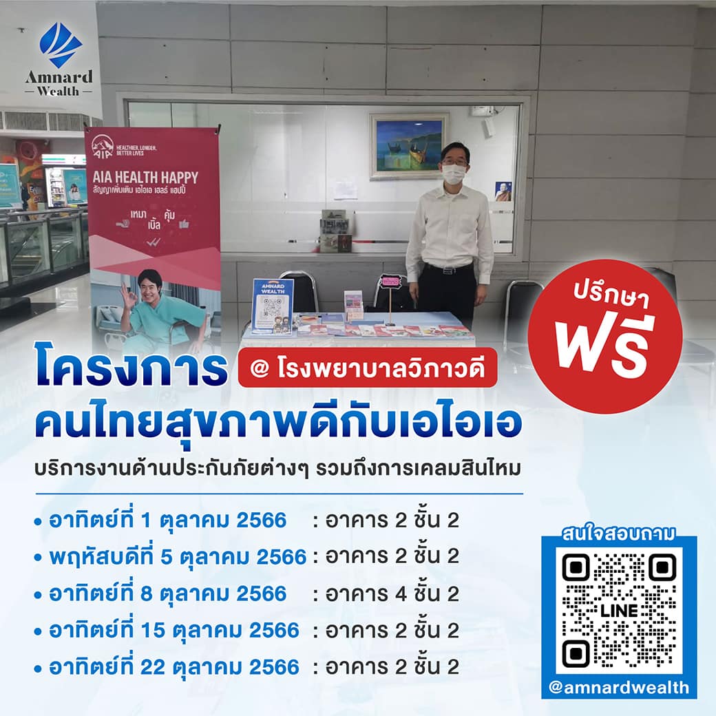 ✨ โครงการคนไทยสุขภาพดีกับเอไอเอ โดยบริษัทอำนาจเวลธ์ ได้เปิดบูธให้คำปรึกษาและบริการลูกค้าประกันสุขภาพฟรี ณ โรงพยาบาลวิภาวดี ตามกำหนดการดังนี้